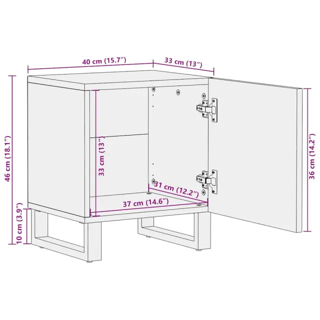 vidaXL Nočna omarica 2 kosa črna 40x33x46 cm trden mangov les