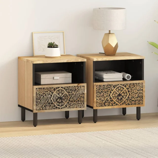 • Retro slog: Nočna omarica z ročno izrezljanimi cvetličnimi vzorci v vaše notranje prostore vnese razkošje retro sloga in postane osrednja točka vaše sobe.