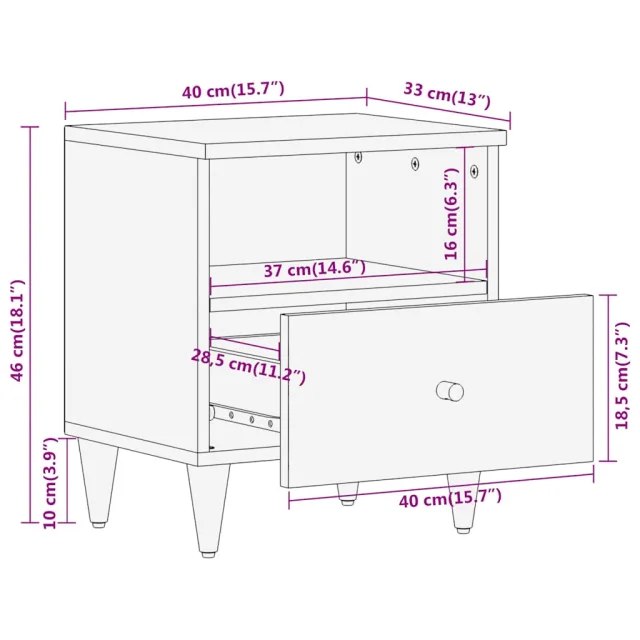 • Veliko prostora za shranjevanje: Nočna omarica je zasnovana z 1 predalom in 1 predelkom, da so stvari organizirane in na dosegu roke.