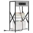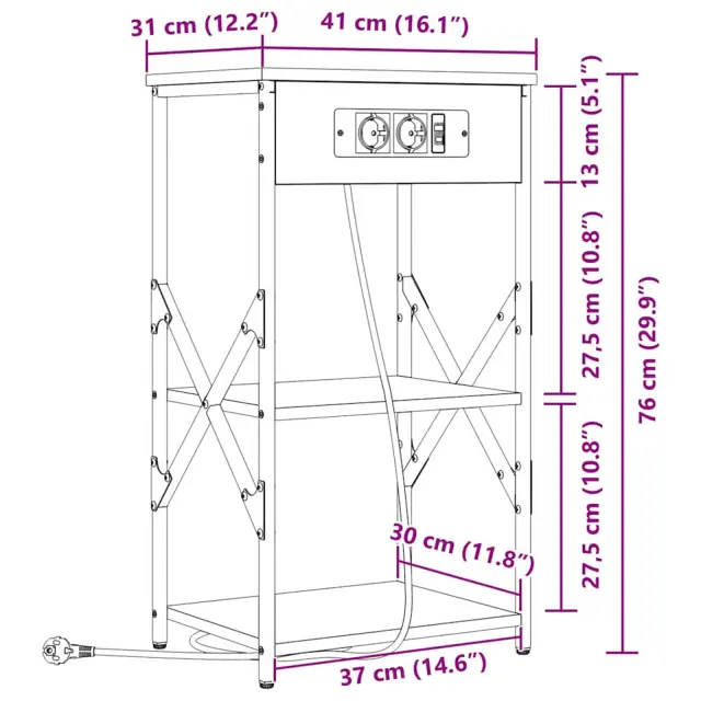 • Vključene komponente: Zasnovana za praktičnost, ta omarica vsebuje več polic, ki nudijo dovolj prostora za shranjevanje nočnih potrebščin. Opremljena je tudi s sodobno polnilno postajo, kar uporabnikom omogoča polnjenje naprav pri postelji.