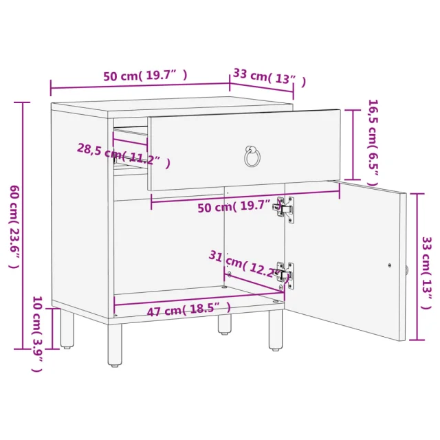 vidaXL Nočna omarica 50x33x60 cm trden mangov les