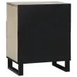 Ta nočna omarica prinaša formo in funkcionalnost, kar jo naredi za odličnega dodatka v vsako spalnico. Njena rustikalna zasnova prinaša naravno privlačnost lesa in ustvarja topel, domač občutek. S svojim elegantnim in gladkim dizajnom je ta mala nočna mizica idealno mesto za lučko, knjigo ali budilko. Popolnoma se prilega ob posteljo, njena privlačna estetika se lepo ujema z različnimi temami spalnic in ponuja praktično shranjevanje za tvoje osobne stvari.