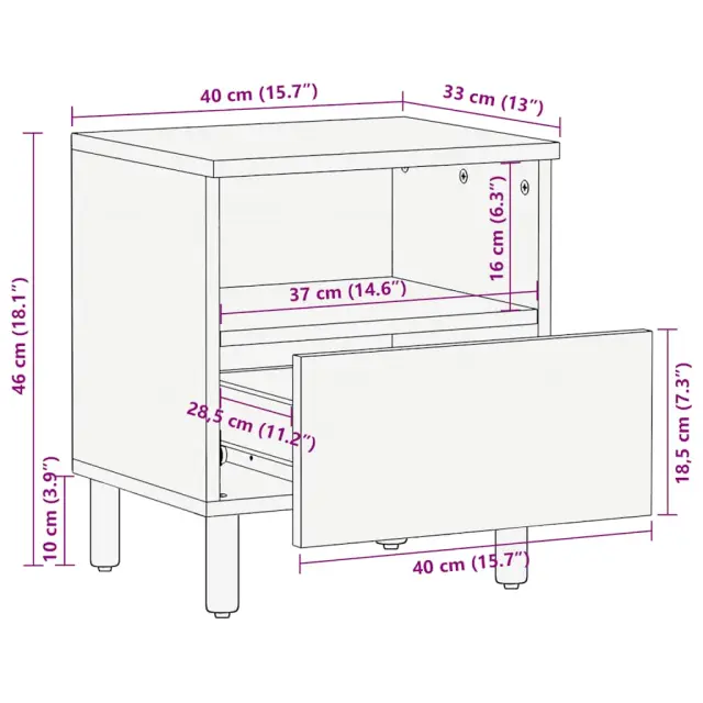 vidaXL Nočna omarica črna 40x33x46 cm inženirski les