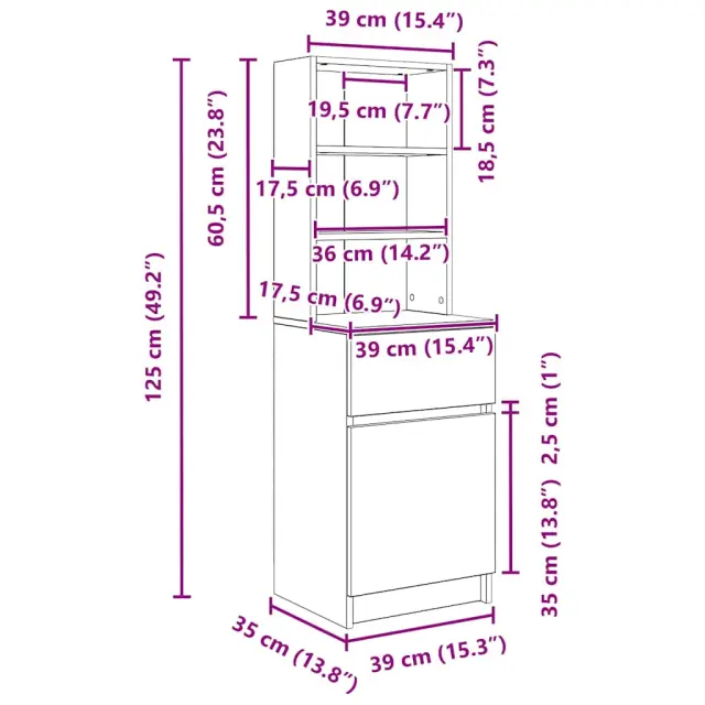 vidaXL Nočna omarica črna 39x35x125 cm inženirski les