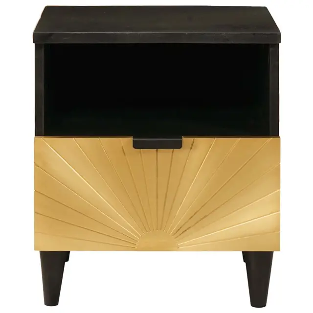 vidaXL Nočna omarica Črna in zlata 40 x 33 x 46 cm trden mangov les