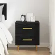 Trpežen inženirski les: Ta omarica je narejena iz inženirskega lesa, znana po svoji moči. Material zadrži vaše nočne pripomočke varne in stabilne skozi čas, kar ponuja trdno podlago za svetilke in knjige. Njen dizajn prinaša sodoben izgled, kar je super za tiste, ki imajo radi moderno dekoracijo. Obilen prostor za shranjevanje: Prostorni predali nudijo veliko prostora za vaše osebne stvari, knjige ali nočne nujnosti. Vsak predal se odpre enostavno, kar olajša dostop do vsebine in ohranja red. Idealno za tiste, ki cenijo stil in prakticnost ter želijo brezkaotično nočno površino. Sofisticirani kovinski detajli: S poliranimi ročaji je njen videz še bolj privlačen. Elegantne noge zagotavljajo stabilnost, njihov stožčast dizajn pa doda moderen dotik celotnemu izgledu, kar se lepo ujema z različnimi notranjimi temami. Učinkovito vzdrževanje: Zasnova za enostavno vzdrževanje; hitri bris z vlažno krpo zadostuje, da ohrani njen videz. Površina je odporna na madeže in zdrži vsakodnevno uporabo, kar zmanjšuje obrabo in zagotavlja dolgo življenjsko dobo. Zahteve za sestavljanje: Enostavna sestava, ki zahteva dva človeka in izvijač. Priložena navodila poenostavijo postavitev in zagotavljajo stabilno omarico, ki obogati vaš spalni prostor.