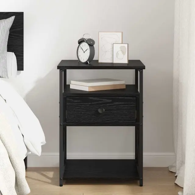 Ta nočna omarica ponuja super kombinacijo rustikalnega šarma in sodobne funkcionalnosti, kar je idealno za spalnice, ki iščejo značaj. Njena nevtralna barva in tekstura se brez težav ujemata z različnimi stili, medtem ko kompaktna zasnova podpira osebne predmete, kot so svetilke ali budilke, ki jih imate vedno pri roki. Z robustno strukturo iz inženirskega lesa in kovine, ta kos je funkcionalen ter estetsko izstopajoč v vsaki spalnici.