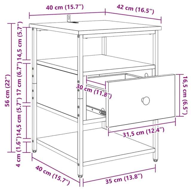 vidaXL Nočna omarica Črni hrast 40 x 42 x 56 cm Konstruiran les