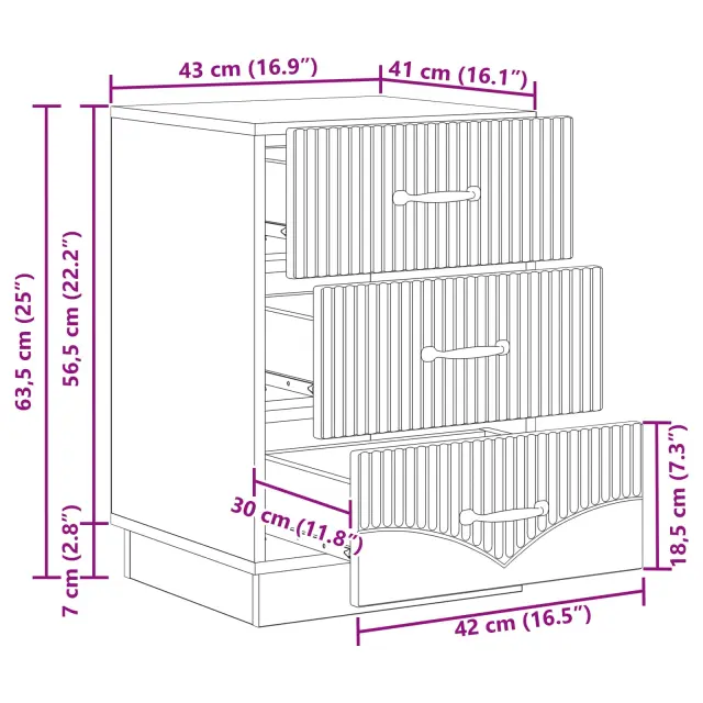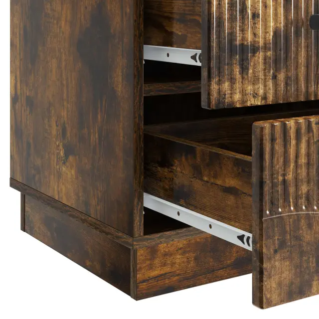 Ta moderna nočna omarica združuje vintage stil in funkcionalnost, idealna za vašo spalnico. Je preprosta, a elegantna in se perfektno ujema s katerikoli zasnovo notranjosti, hkrati pa ponuja veliko prostora za shranjevanje vaših najljubših stvari, kot so knjige in svetilke.