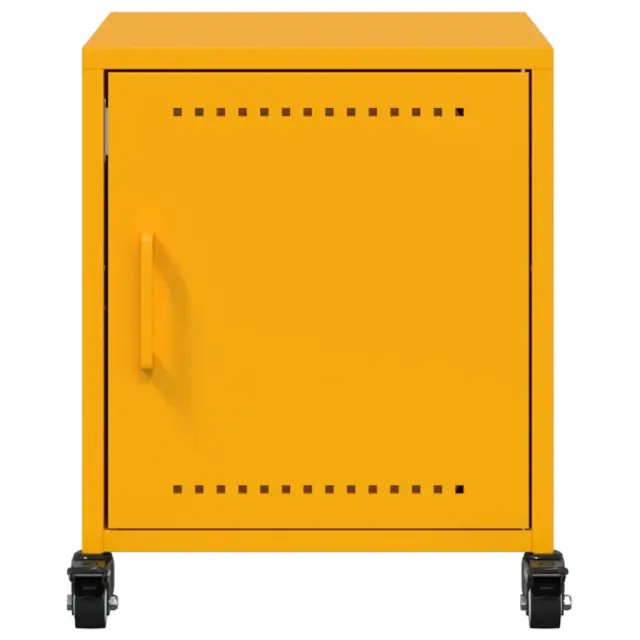 Ta nočna omarica s stilskim dizajnom predstavlja brezčasen dodatek za dekor v vaših notranjih prostorih. Stabilen material: Nočna omarica je izdelana iz hladno valjanega jekla. Hladno valjano jeklo je vrsta nizkoogljičega jekla, ki se proizvaja z metodo "hladnega valjanja" in obdeluje pri skoraj običajnih sobnih temperaturah. Hladno valjano jeklo ima bolj gladko površino, večjo trdnost in natančnost.Veliko prostora za shranjevanje: Ta omarica ponuja priročen prostor za shranjevanje vaših revij, knjig, daljinskih upravljalnikov in drugih majhnih predmetov, da bodo dobro urejeni in na dosegu roke.Enostavno vzdrževanje: Mizico je enostavno očistiti z vlažno krpo, poleg tega ne potrebuje veliko vzdrževanja.Enostavno premikanje: Ta odstavna mizica ima 4 kolesa, ki omogočajo enostavno premikanje in stabilno parkiranje.Praktičen ročaj: Omarici je priložen ročaj, ki olajša odpiranje in zapiranje omare, obenem pa poskrbi za dodatno lepoto.Barva: Gorčično rumenaMaterial: Hladno valjano jekloDimenzije: 36 x 39 x 43,5 cm (D x Š x V)1 Predelek z vratiPotrebno sestavljanje: Da 846620