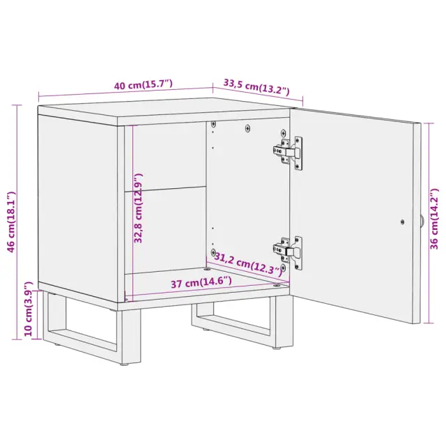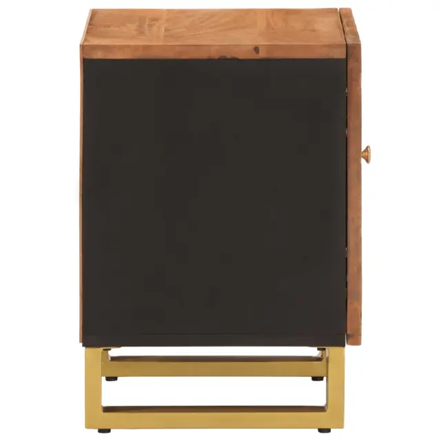 Ta nočna omarica z elegantnim dizajnom je brezčasen dodatek za vaše notranje prostore. Trden mangov les: Trden mangov les je močan in trden tropski les, iz katerega je mogoče izdelati trpežno pohištvo. Zaradi čudovitih vzorcev lesa se vsak kos pohištva nekoliko razlikuje od ostalih. Omarica iz trdnega mangovega lesa je vzdržljiva in stabilna.Praktična vrata: Za vrati te nočne omarice lahko skrijete majhne predmete in poskrbite za urejen prostor.Stabilna površina: Površina stranske omarice je kot nalašč za razstavljanje okrasnih predmetov, okvirjev za slike in lončnic.Trdne noge: Železne noge prispevajo k trdnosti in stabilnosti pohištva za spalnico.Barva: Rjava in črnaMaterial: Trden mangov les z akacijevim rjavim zaključkom, mediapan, železoDimenzije: 40 x 33,5 x 46 cm (Š x G x V)Potrebno sestavljanje: Da 356779