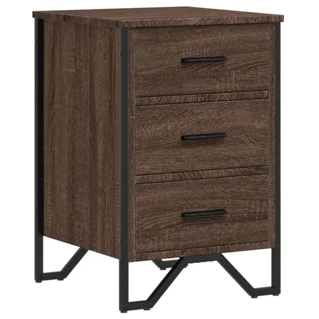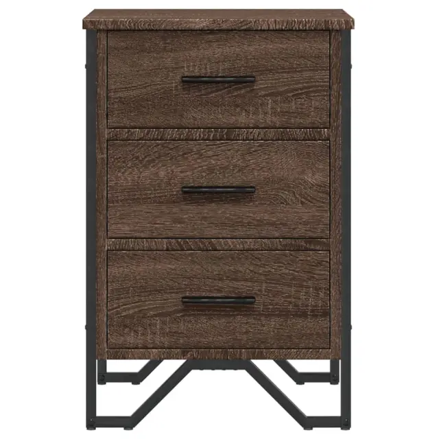 Ta modna nočna omarica z elegantnim in klasičnim dizajnom bo vaš notranji prostor ponesla na višjo raven. Material z dolgo življenjsko dobo: Inženirski les se ponaša z izjemno kakovostjo, gladko površino ter močjo, stabilnostjo in odpornostjo na vlago.Veliko prostora za shranjevanje: Ta nočna omarica ima tri predale za shranjevanje revij, knjig, daljinskih upravljalnikov in drugih majhnih predmetov.Trdna površina: Močna površina nočne omarice je idealna za razstavljanje okrasnih predmetov, okvirjev za fotografije ali rastlin v lončkih.Kovinske noge: Kovinske noge vašim notranjim prostorom dodajajo moderen in uglajen slog, hkrati pa zagotavljajo stabilnost.Barva: Rjav hrastMaterial: Inženirski les, kovinaDimenzije: 40 x 41 x 60 cm (D x Š x V)Potrebno sestavljanje: DaLegal Documents:Več informacij o tem, kako preprečiti prevračanje pohištva, je na voljo tukaj 848528