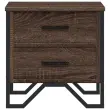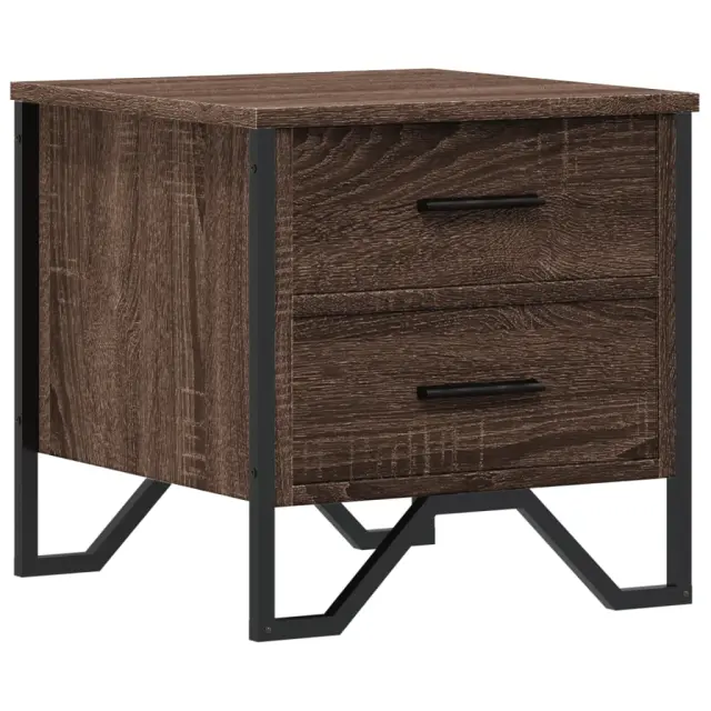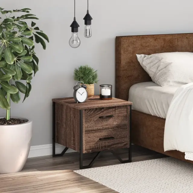 Ta modna nočna omarica z elegantnim in klasičnim dizajnom bo vaš notranji prostor ponesla na višjo raven. Material z dolgo življenjsko dobo: Inženirski les se ponaša z izjemno kakovostjo, gladko površino ter močjo, stabilnostjo in odpornostjo na vlago.Veliko prostora za shranjevanje: Ta nočna omarica ima dva predala za shranjevanje revij, knjig, daljinskih upravljalnikov in drugih majhnih predmetov.Trdna površina: Močna površina nočne omarice je idealna za razstavljanje okrasnih predmetov, okvirjev za fotografije ali rastlin v lončkih.Kovinske noge: Kovinske noge vašim notranjim prostorom dodajajo moderen in uglajen slog, hkrati pa zagotavljajo stabilnost.Barva: Rjav hrastMaterial: Inženirski les, kovinaDimenzije: 40 x 41 x 40 cm (D x Š x V)Potrebno sestavljanje: Da 848512