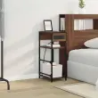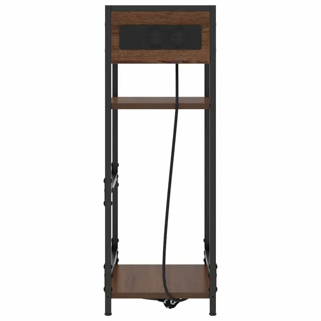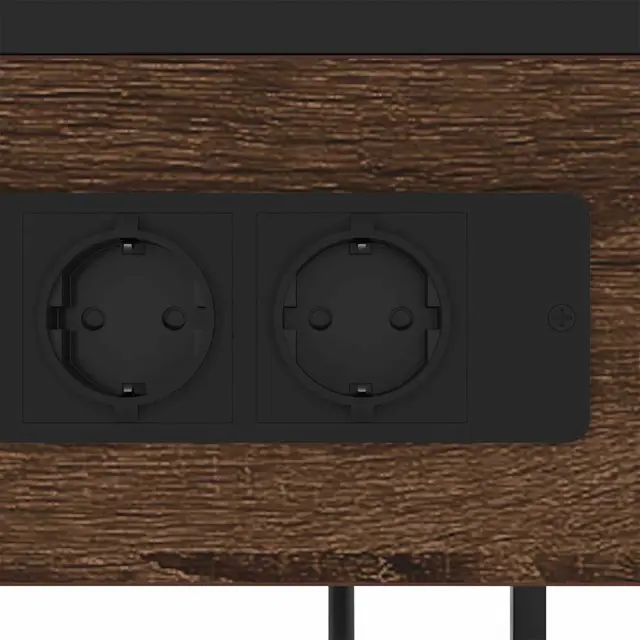 Ta elegantna nočna omarica v rustikalnem slogu pritegne pozornost in se brez težav prilega katerikoli spalnici. Zasnovana za vse, ki cenijo funkcionalnost in estetiko, združuje čudovit neprizanesljiv izgled s kombinacijo jekla in inženirskega lesa. Ima pravo obliko, dopolnjeno s črnim okvirjem, ki doda modernejši občutek. Je več kot le omarica; predstavlja urejeno eleganco, idealno za osebne ali skupne prostore.