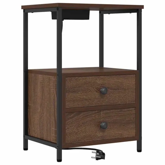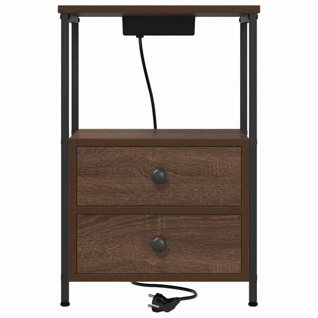 Ta nočna omarica z vgrajeno polnilno postajo je odlična kombinacija funkcionalnosti in rustikalnega šarma, ki se brez težav prilega vsaki spalni dekoraciji. Njena kompaktna pravokotna oblika paše ob posteljo in ponuja priročen prostor za shranjevanje nočnih potrebščin, kot so lučke, budilke ali osebne stvari, medtem ko tvoje naprave napolni in pripravi za uporabo.