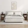 • Vključeni komponente: Opremljena z dvema prostornima predaloma, ta omarica ponuja dovolj prostora za shranjevanje, od knjig do očal in drugih nočnih potrebščin. Predali se odpirajo gladko, kar omogoča enostaven dostop. Ima tudi tradicionalno ročko, kar povečuje uporabnost in ohranja rustikalni čar. Poleg tega je vgrajena polnilna postaja super za polnjenje naprav brez nereda.