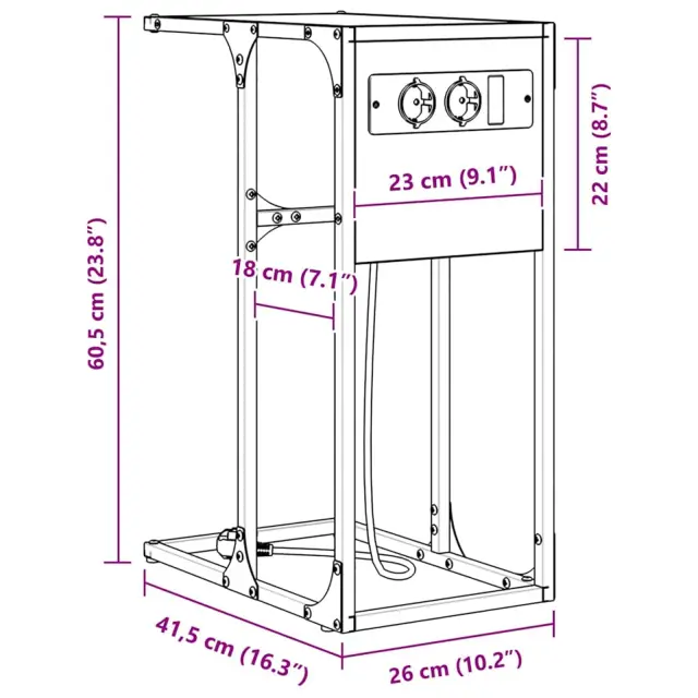 Ta rustikalna nočna omarica je idealna kombinacija stila in uporabnosti za vašo spalnico. V elegantnem rustikalnem slogu, povezuje inženirski les z jeklenim okvirjem, kar ji daje sodoben pridih in naravno lepoto. Dimenzije 41,5 x 26 x 60,5 cm se odlično prilagodijo različnim višin postelj in nudijo praktičen prostor za vaše nujne stvari.