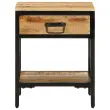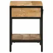 Ta rustikalna nočna omarica brez težav kombinira privlačnost trdnega mangovega lesa in sijoče kovine, kar ustvari brezčasno dodatno opremo za vsak prostor. Njena vsestranska pravokotna oblika in topli rjavi odtenki dodajo pridih naravne lepote ter funkcionalnosti, kar se prilagaja različnim stilom in potrebam.