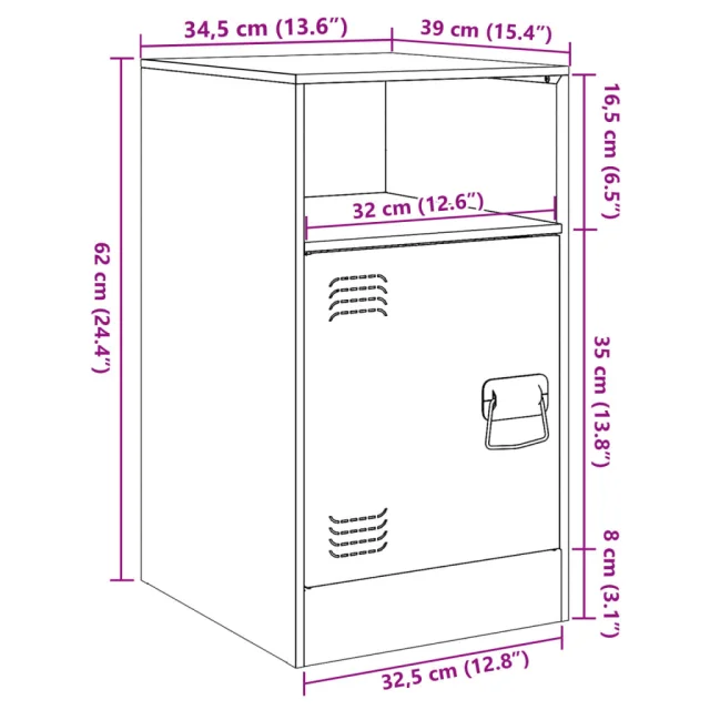 vidaXL Nočna omarica roza 34,5x39x62 cm jeklo