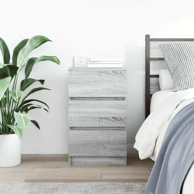 vidaXL Nočna omarica s 3 predali siva sonoma 39x35x65 cm
