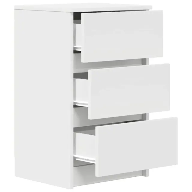 vidaXL Nočna omarica s 3 predali bela 39x35x65 cm