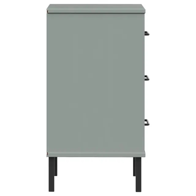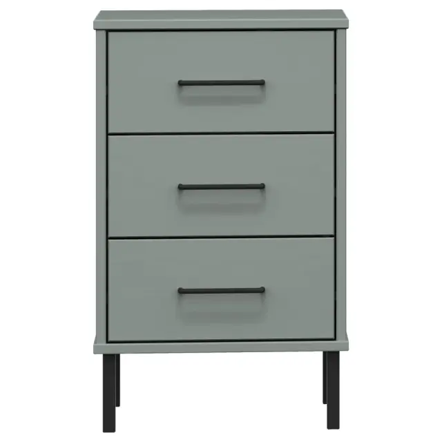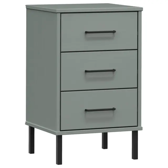 vidaXL Nočna omarica s kovinskimi nogami siva trdna borovina OSLO
