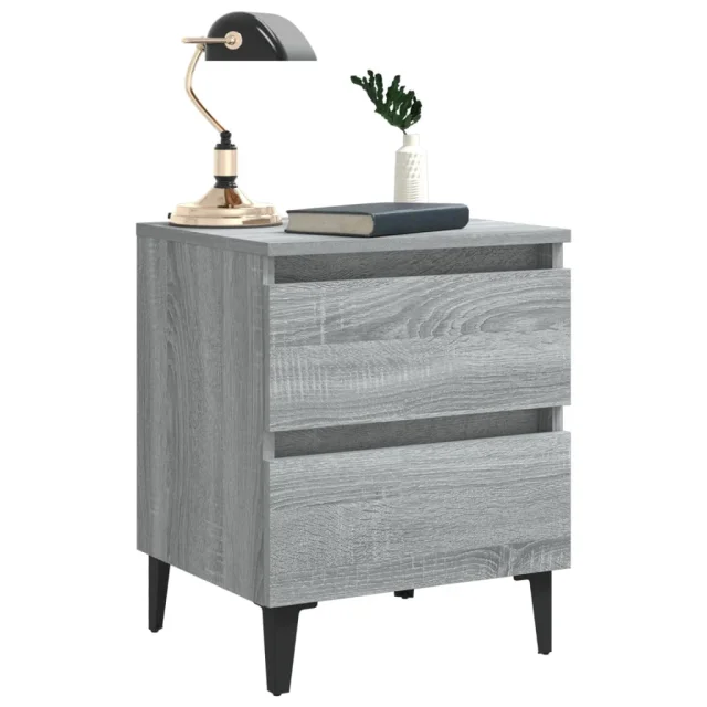 vidaXL Nočna omarica s kovinskimi nogami 2 x siva sonoma 40x35x50 cm