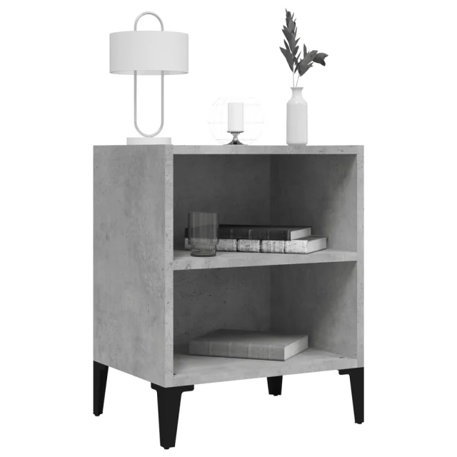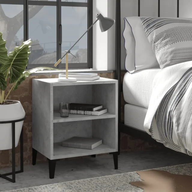 Ta nočna omarica s kovinskimi nogami je stabilna in trdna. Nočno stojalo ima tudi dve polici, ki nudita veliko prostora za shranjevanje vaših potrebščin, da bodo lepo organizirane in pri roki. Omarica je enostavna za čiščenje z vlažno krpo.