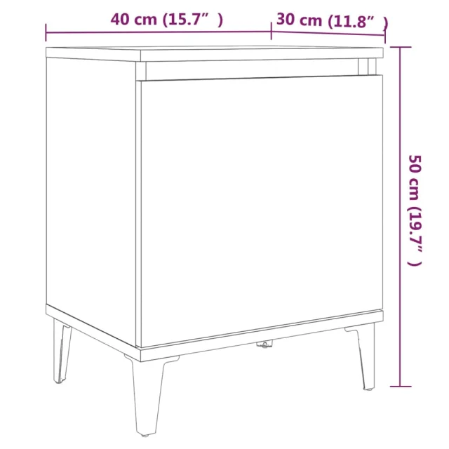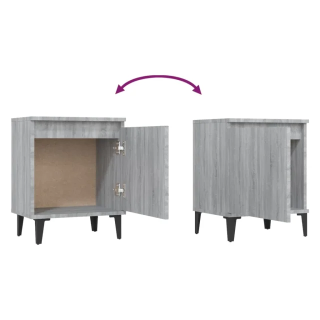 vidaXL Nočna omarica s kovinskimi nogami siva sonoma 40x30x50 cm
