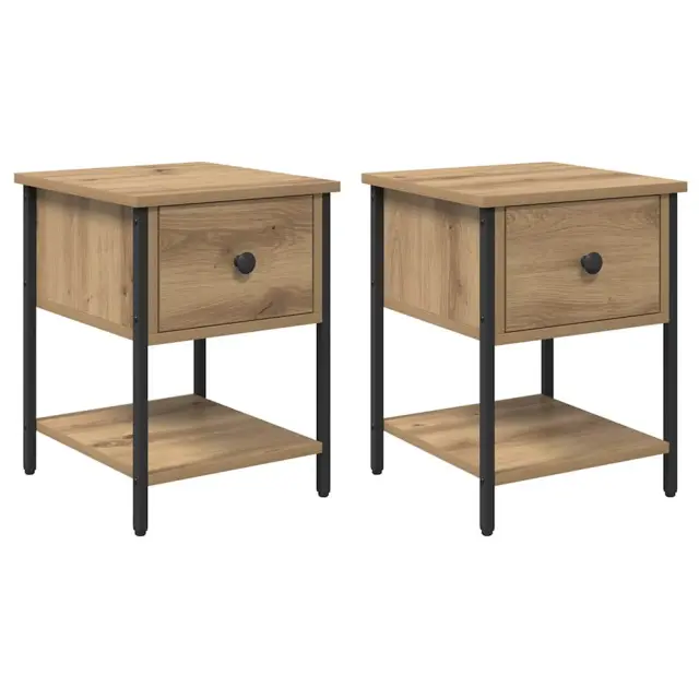 vidaXL Nočna omarica s predalom 2 pcs artisan hrast 34 x 35,5 x 45 cm