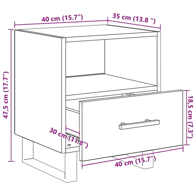 vidaXL Nočna omarica s predalom 2 pcs artisan hrast 40 x 35 x 47.5 cm