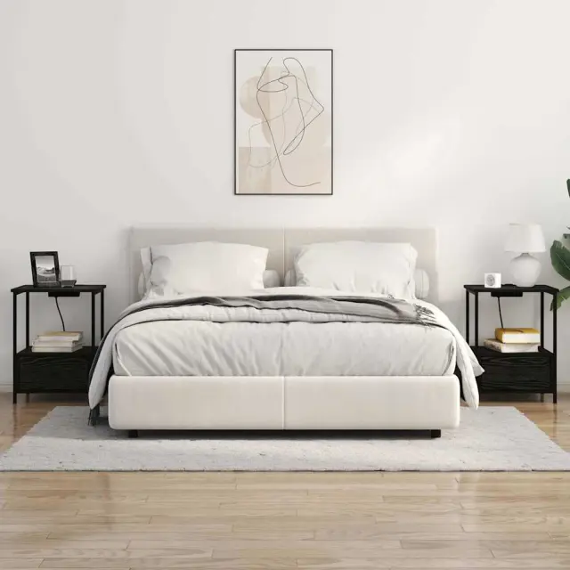 • Materiali: Nočna omarica je izdelana iz vrhunskega inženirskega lesa, kar ji daje naraven videz in toplino v spalnici. Dodatno je ojačana s trdnimi jeklenimi nogami, kar nudi stabilnost in moč. Kombinacija teh materialov zagotavlja estetski izgled in praktično vzdržljivost, kar jo naredi dolgotrajen dodatek za dom.