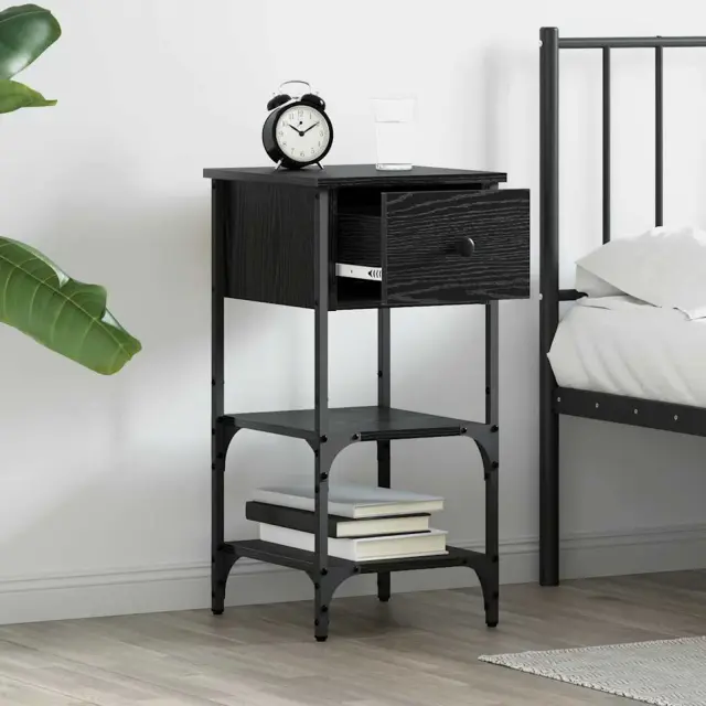 Ta moderna nočna omarica se prilega vsaki spalnici. S svojim stilnim dizajnom je funkcionalna in elegantna. Narejena za sodobno življenje, ta miza s pravokotnim oblikovanjem in črno površino izgleda odlično. Idealna je kot nočna omarica, saj drži vse pomembne stvari, kot so knjige ali budilniki, na dosegu roke. Njena kompaktna velikost omogoča enostavno uporabo v različnih prostorih, kar zagotavlja udobje brez kompromisov glede stila.