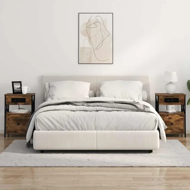 • Vključeni komponente: Opremljena z dvema prostornima predaloma, ta omarica ponuja dovolj prostora za shranjevanje, od knjig do očal in drugih nočnih potrebščin. Predali se odpirajo gladko, kar omogoča enostaven dostop. Ima tudi tradicionalno ročko, kar povečuje uporabnost in ohranja rustikalni čar. Poleg tega je vgrajena polnilna postaja super za polnjenje naprav brez nereda.