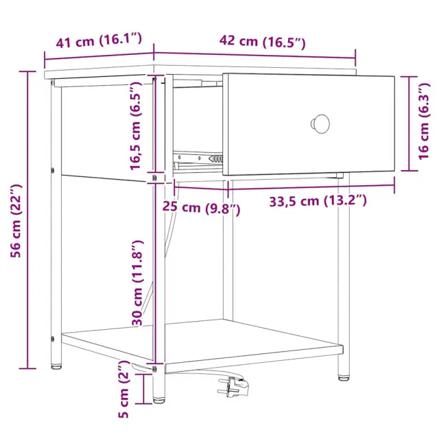 vidaXL Nočna omarica s predalom 2 pcs Sonoma hrast 42 x 41 x 56 cm