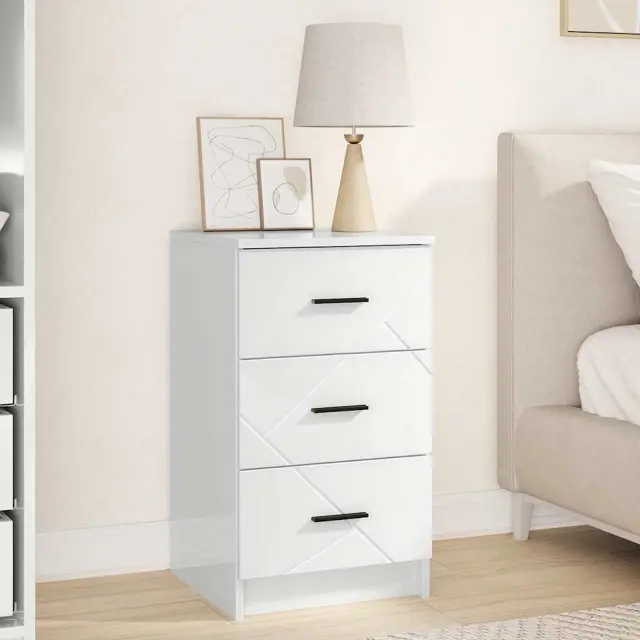 vidaXL Nočna omarica s predalom Bela z visokim sijajem 38 x 38 x 66 cm