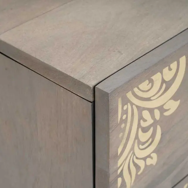 vidaXL Nočna omarica s predalom Siva 40 x 33 x 46 cm trden mangov les