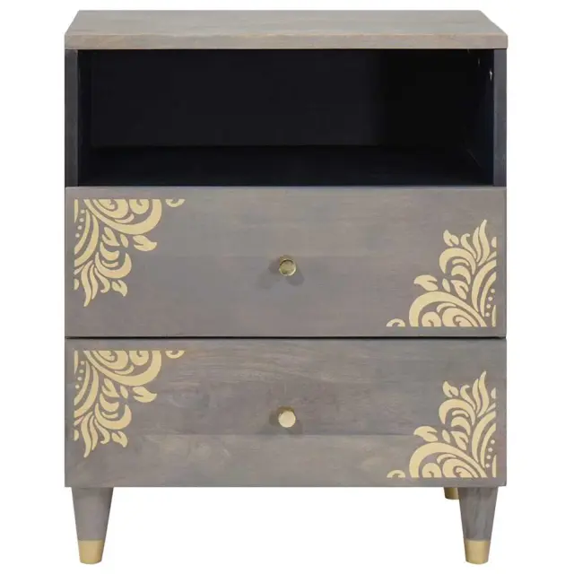 vidaXL Nočna omarica s predalom Siva 50 x 33 x 62 cm trden mangov les