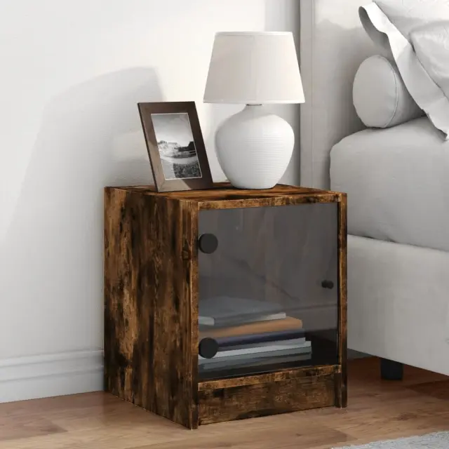 vidaXL Nočna omarica s steklenimi vrati dimljeni hrast 35x37x42 cm