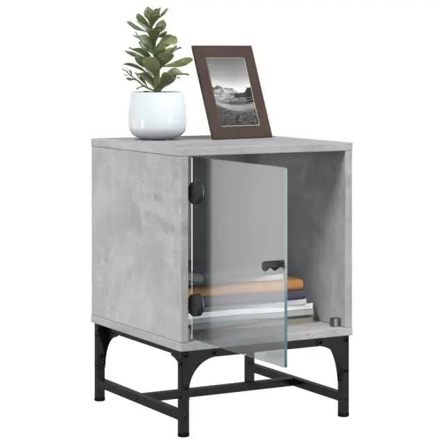 vidaXL Nočna omarica s steklenimi vrati betonsko siva 35x37x50 cm