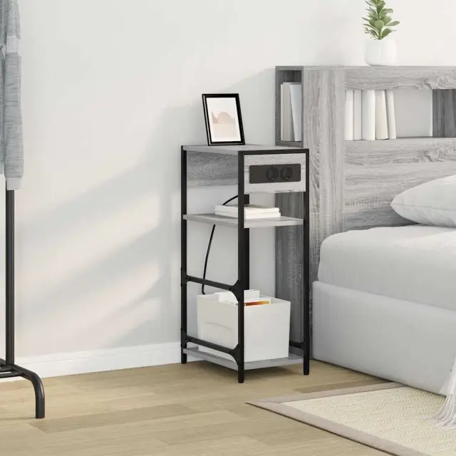Ta elegantna nočna omarica v rustikalnem slogu pritegne pozornost in se brez težav prilega katerikoli spalnici. Zasnovana za vse, ki cenijo funkcionalnost in estetiko, združuje čudovit neprizanesljiv izgled s kombinacijo jekla in inženirskega lesa. Ima pravo obliko, dopolnjeno s črnim okvirjem, ki doda modernejši občutek. Je več kot le omarica; predstavlja urejeno eleganco, idealno za osebne ali skupne prostore.