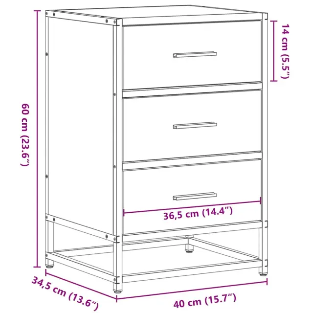 vidaXL Nočna omarica sonoma hrast 40x34,5x60 cm inž. les in kovina