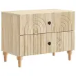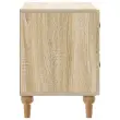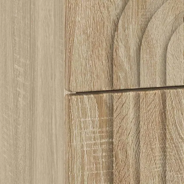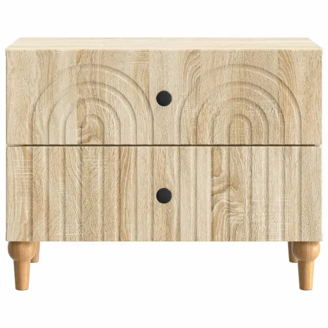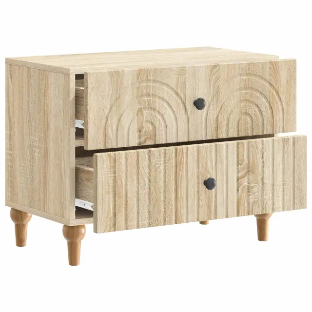 Ta elegantna nočna omarica prinaša moderni stil s svojim pravokotnim dizajnom in črtastim vzorcem. Popolnoma je zasnovana, da doda funkcionalnost in šarm v dnevno sobo ali spalnico, deluje kot odličen spremljevalec postelje, nudi rešitve za shranjevanje ter se lepo ujame z estetiko prostora. Njena minimalistična, a stilizirana oblika se brez težav prilega različnim dekorjem, zaradi česar je vsestranska za sproščene in sofisticirane prostore. Subtilna struktura iz inženirskega lesa daje občutek kakovosti in stabilnosti.