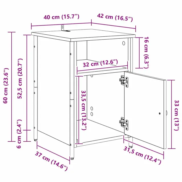 • Splošne dimenzije: 40 x 42 x 60 cm (D x Š x V)