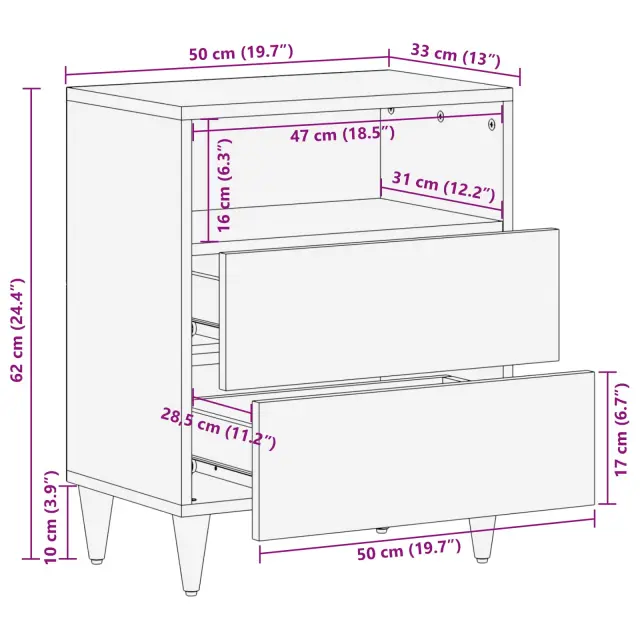 vidaXL Nočna omarica večbarvno 50 x 33 x 60 cm Masiven les manga