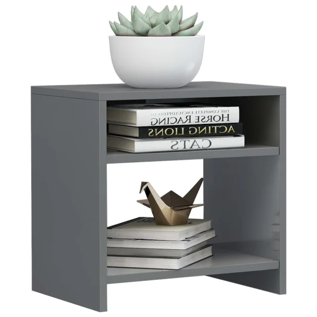Nočna omarica je izdelana iz iverne plošče, zato je trdna, trpežna in vsestranska. Kot univerzalno uporabna skrinja je primerna tudi za uporabo kot mizica za ob kavč v dnevni sobi. Odprt predelek in polica zagotavljata veliko prostora za organizirano shranjevanje vaših revij, knjig, daljinskih upravljalnikov in drugih manjših stvari, ki bodo tako vedno na dosegu. Poleg tega je ta nočna omarica preprosta za čiščenje z vlažno krpo.