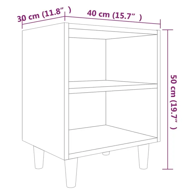 vidaXL Nočna omarica z lesenimi nogami 2 kosa siva sonoma 40x30x50 cm