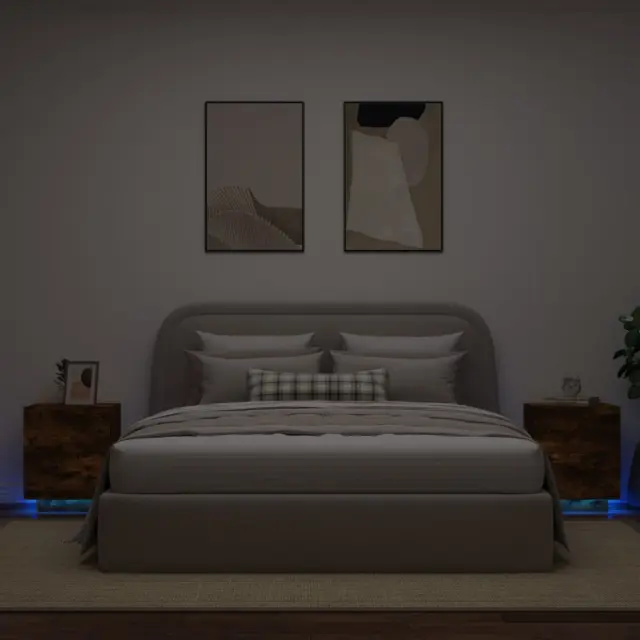 vidaXL Nočna omarica z LED lučkami 2 kosa dimljen hrast inženirski les