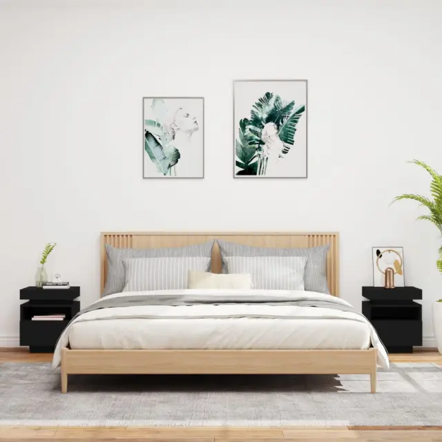 vidaXL Nočna omarica z LED lučkami 2 kosa črna 40x39x48,5 cm