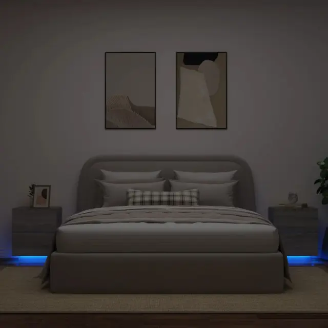 vidaXL Nočna omarica z LED lučkami 2 kosa siva sonoma inženirski les